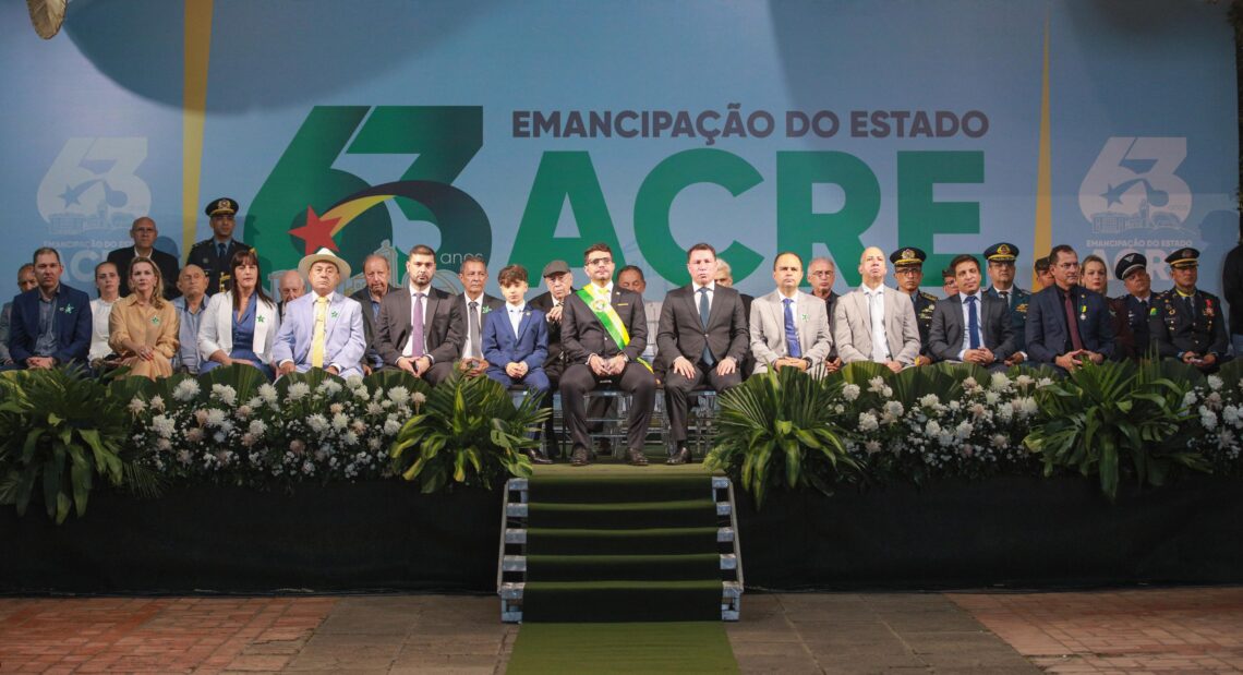 No domingo (15) o governador Gladson Cameli celebrou os 63 anos do Estado do Acre com lindas homenagens. Autoridades, Empresários, Políticos juntamente com a população, estiveram presentes “Celebramos um marco na história do nosso povo! Há 63 anos, o Acre conquistava sua emancipação política e se tornava oficialmente um estado brasileiro. Desde então, seguimos escrevendo nossa própria história com coragem, trabalho e união” (Governador Gladson Cameli)