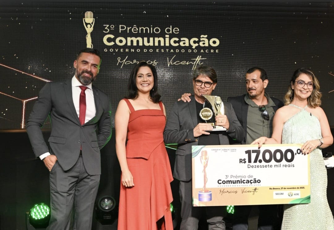 R$ 107 mil em premiações distribuídas entre seis categorias, o evento celebrou a imprensa acreana em um clima de valorização, destacando os melhores trabalhos produzidos pelos profissionais que, diariamente, se dedicam a levar informações precisas a todas as regiões do território. Pelo terceiro ano consecutivo, o governo do Acre, por meio da Secretaria de Estado de Comunicação (Secom), consolida a realização do prêmio e reafirma o compromisso de reconhecer e valorizar o trabalho da imprensa local.