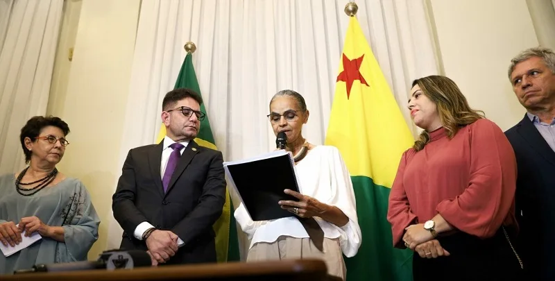 Por meio do Fundo Amazônia, o Acre recebeu R$ 98 milhões para reforçar as políticas públicas de enfrentamento aos ilícitos ambientais e fomentar a bioeconomia sustentável. A solenidade que oficializou o repasse ocorreu na sexta-feira, 12, no Palácio Rio Branco, e contou com a participação do governador Gladson Cameli, da ministra do Meio Ambiente e Mudança Clima, Marina Silva, e do ministro do Desenvolvimento Agrário e Agricultura Familiar, Paulo Teixeira.