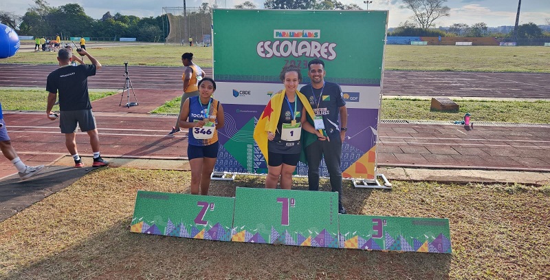 Emilly Neves, que tem deficiência física em membro inferior, viajou para a disputa no Distrito Federal acompanhada do professor de Educação Física
