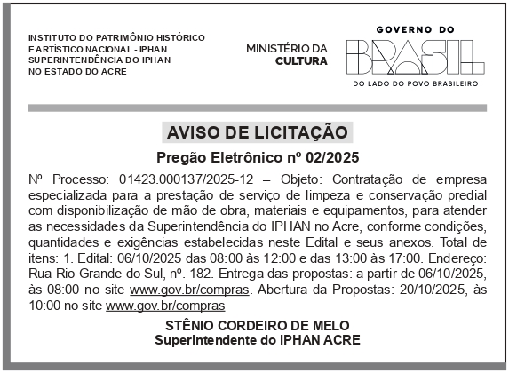 • Aviso de Concorrência 003.2025 Senac-DR/AC 12 de dezembro de 2025