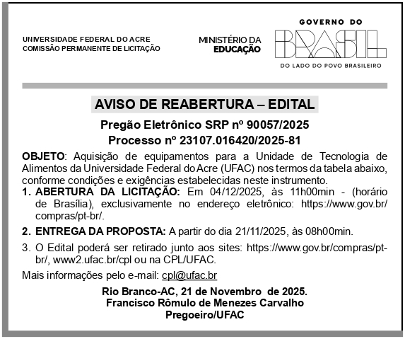 O Instituto Federal do Acre (Ifac) lança na próxima sexta-feira (21.11) o edital do Processo Seletivo 2026.1 para cursos de...