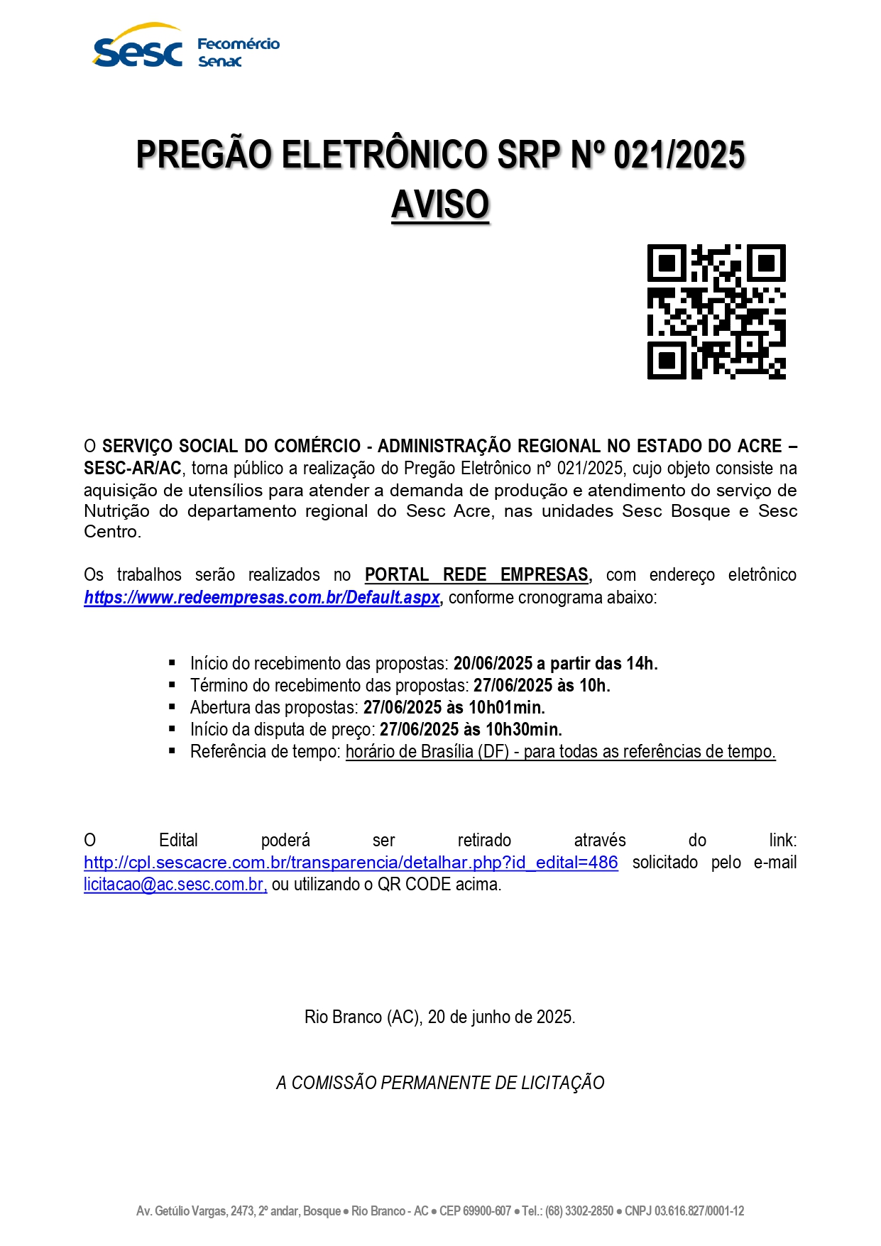 Aviso Pregão Eletrônico SRP n° 021/2025