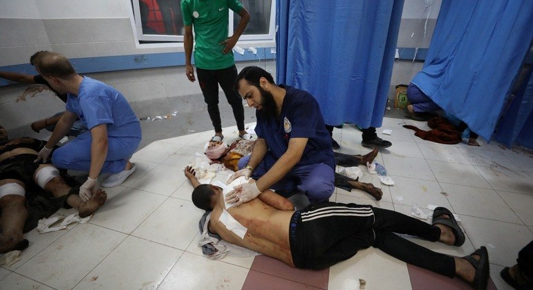 “Pelo menos 200 pessoas foram mortas pelos bombardeios israelenses” no Hospital Al Ahli Arab, um dos centros de saúde no centro de Gaza, informou o Ministério da Saúde palestino em comunicado.