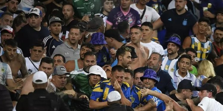 A derrota do Brasil para a Argentina por 1 a 0 nesta terça-feira (21), em jogo válido pelas Eliminatórias da Copa do Mundo de 2026, ficou marcada também pela briga entre torcedores das duas seleções nas arquibancadas do Maracanã antes de a partida começar. Por causa do confronto, que teve depredação de cadeiras do estádio e pedidos dos próprios jogadores para cessar o conflito, o início do jogo precisou ser adiado em 27 minutos.