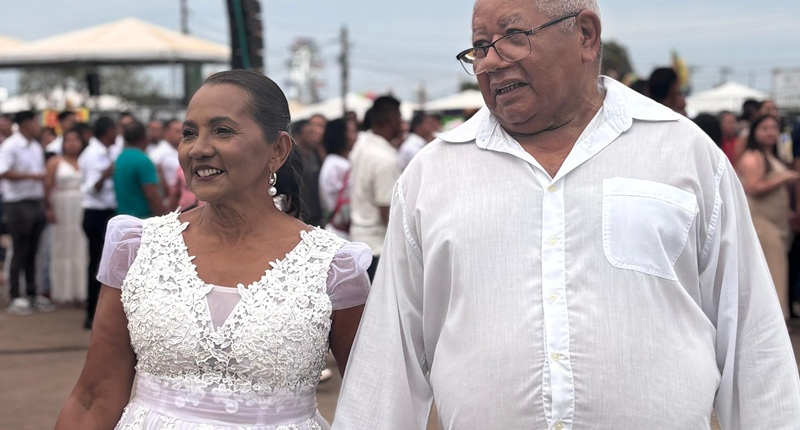 O Casamento Coletivo realizado na tarde deste sábado (2), no Parque de Exposições Wildy Viana, reuniu 382 casais que oficializaram a união civil durante a programação da Expoacre 2025. Entre eles, está o senhor Manoel Conceição da Silva, de 69 anos, e Priscila Souza Nascimento, de 67, juntos há mais de três anos.