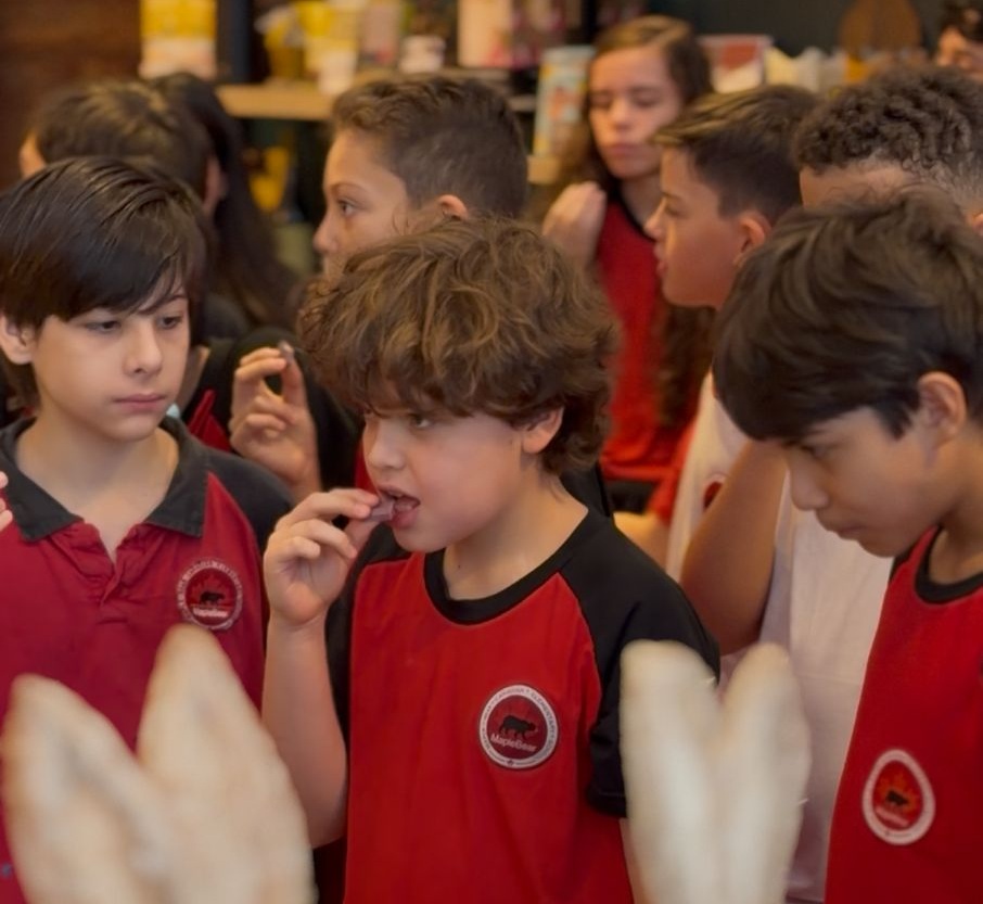 Durante a visita, os estudantes conheceram o processo de fabricação adotado pela marca, baseado no modelo “bean to bar”, que envolve todas as etapas, do grão à barra. A proposta destaca a origem do cacau e o uso de ingredientes naturais.