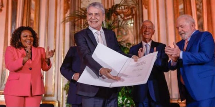 O cantor, compositor e escritor Chico Buarque, de 78 anos, recebeu o prêmio Camões, o mais importante da literatura de língua portuguesa, em uma cerimônia em Sintra, em Portugal, nesta segunda-feira (24) com a presença do Presidente do Brasil, Lula da Silva, do Presidente de Portugal, Marcelo Rebelo e da Ministra da Cultura do Brasil, Margareth Menezes e outras autoridades e celebridades de Portugal