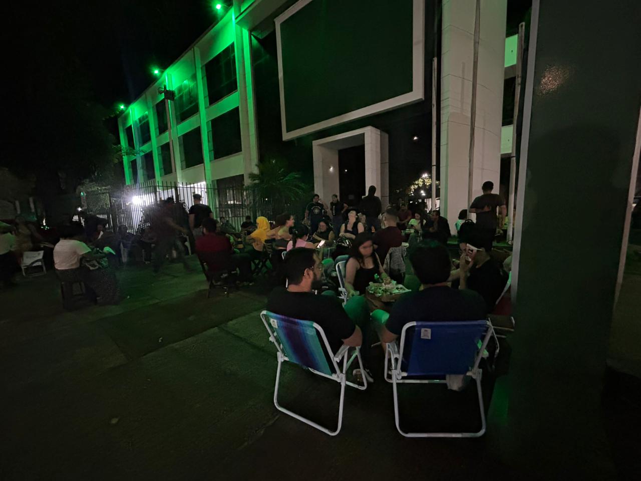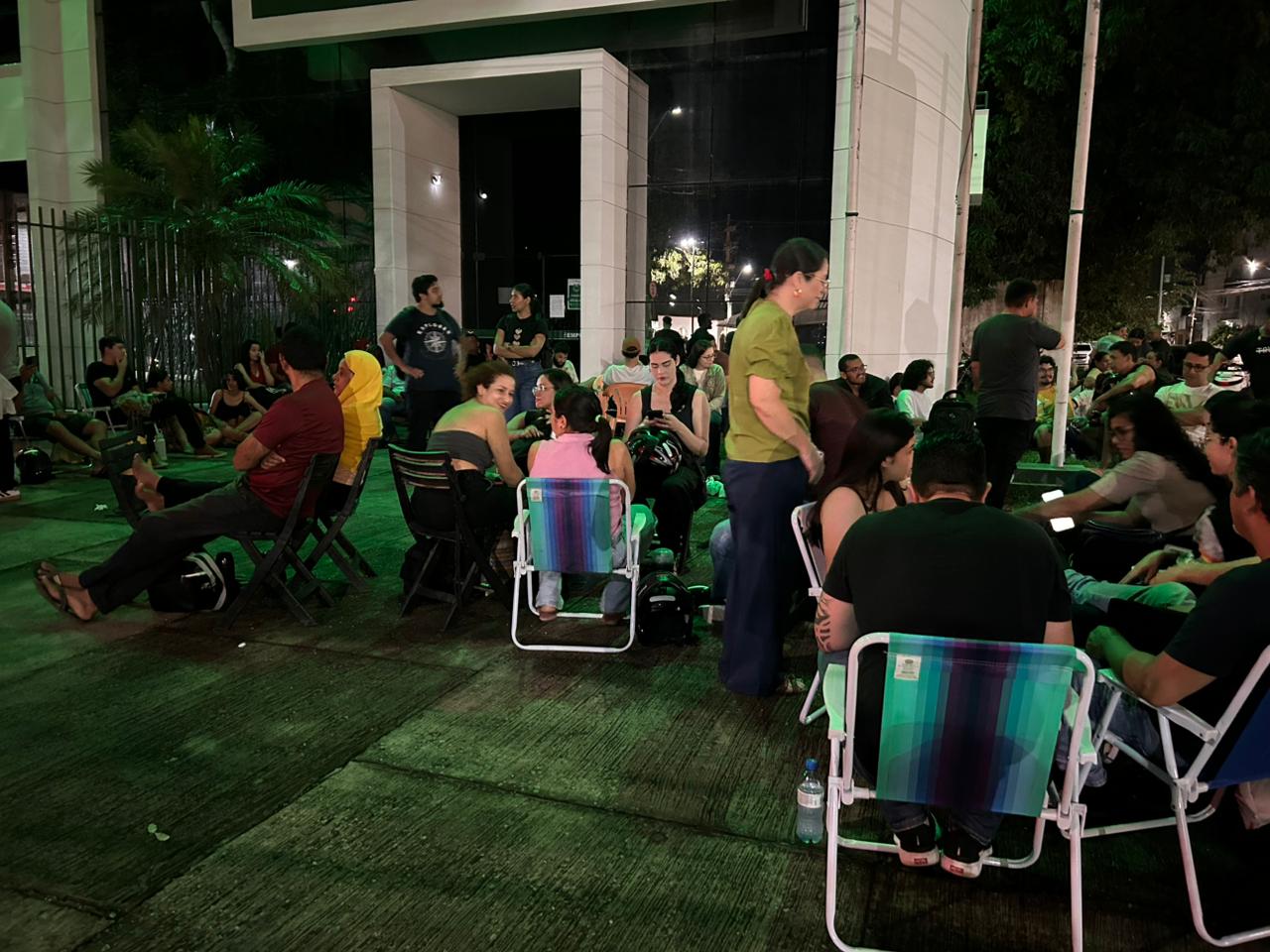 Segundo os relatos, há pessoas dormindo em barracas, redes, cadeiras, carros, na calçada e até na grama em frente ao prédio.