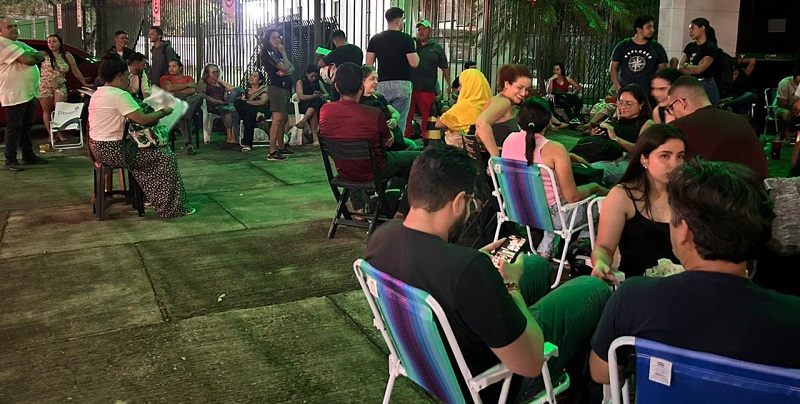 Segundo os relatos, há pessoas dormindo em barracas, redes, cadeiras, carros, na calçada e até na grama em frente ao prédio.