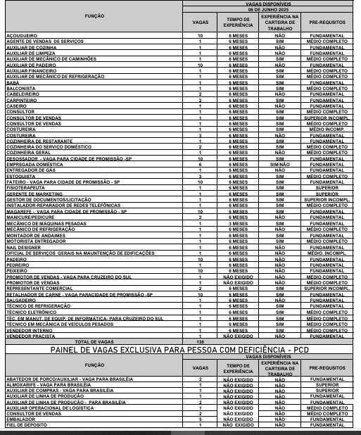 O Sistema Nacional de Emprego do Acre (Sine-AC) oferece 155 vagas de emprego nesta sexta-feira (06). Destas vagas, 17 são destinadas exclusivamente às pessoas com deficiência.