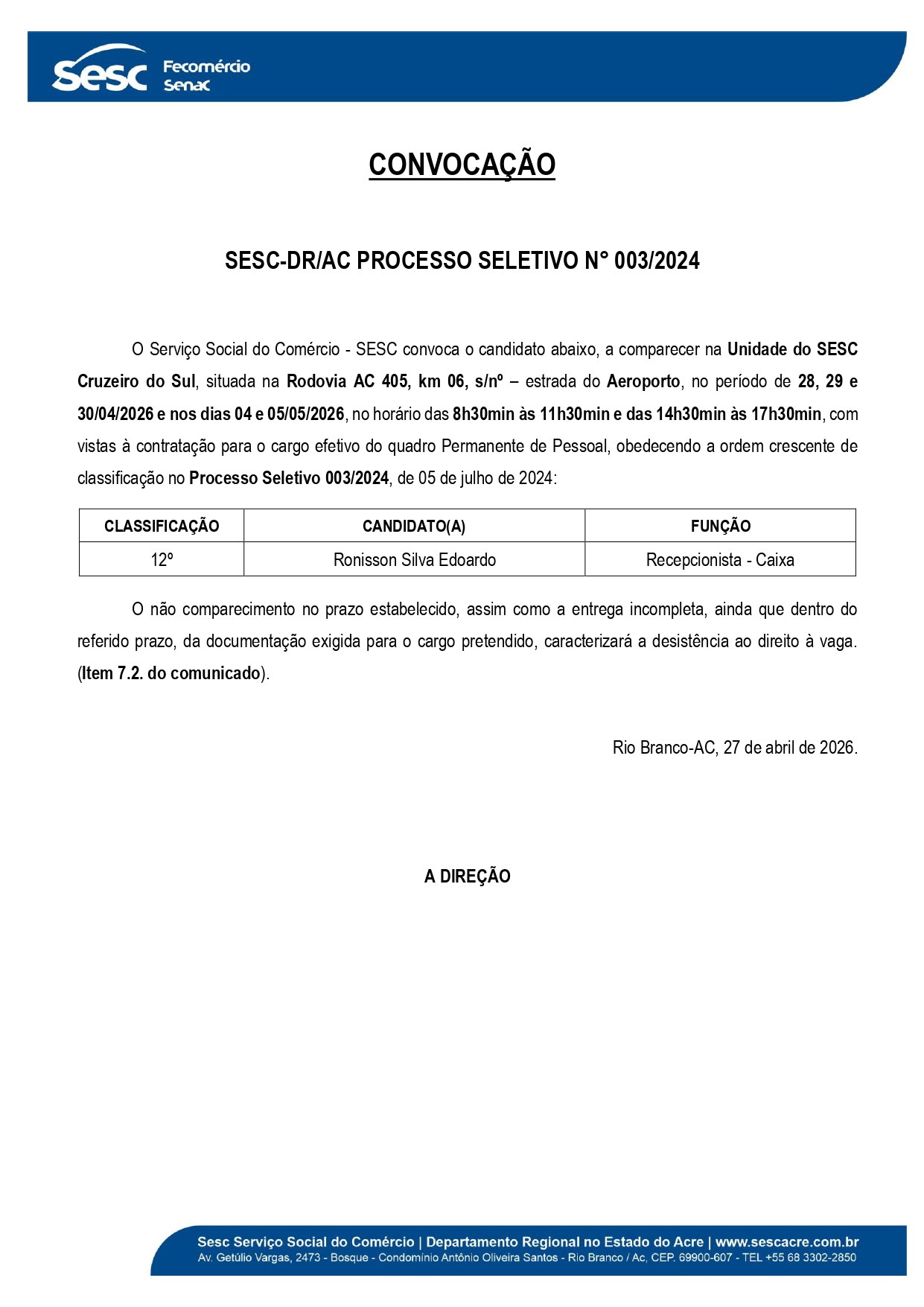 O Conselho Municipal dos Direitos da Criança e do Adolescente (CMDCA) publicou nesta segunda-feira (27) a convocação de um suplente...