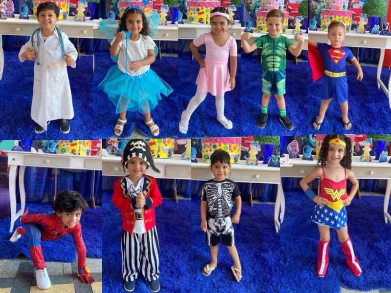 Além dos dias malucos e coloridos, a escola promoveu o “Dia das Profissões”, em que os alunos se vestiram como o que desejam ser no futuro, médicos, professores, veterinários e bombeiros dividiram o mesmo pátio com super-heróis e princesas.
