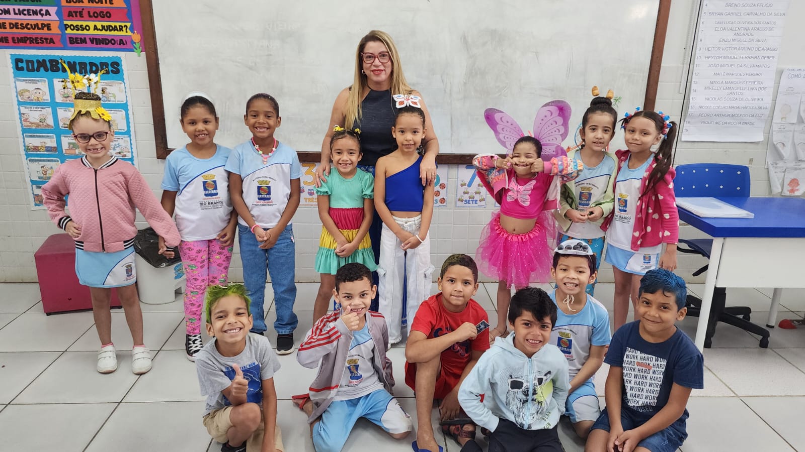 A escola atende cerca de 500 alunos e teve adesão quase total às atividades. Até os professores entraram na brincadeira, pintando os cabelos e vestindo roupas coloridas.