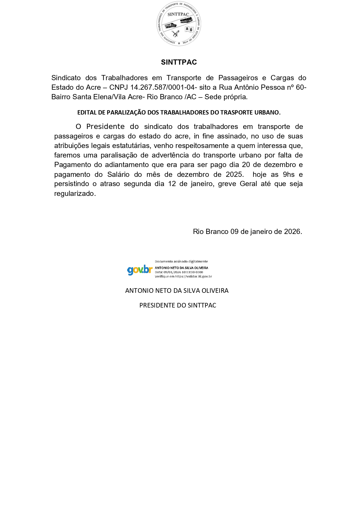 Edital de Paralisação dos Trabalhadores Urbano – SINTTPAC