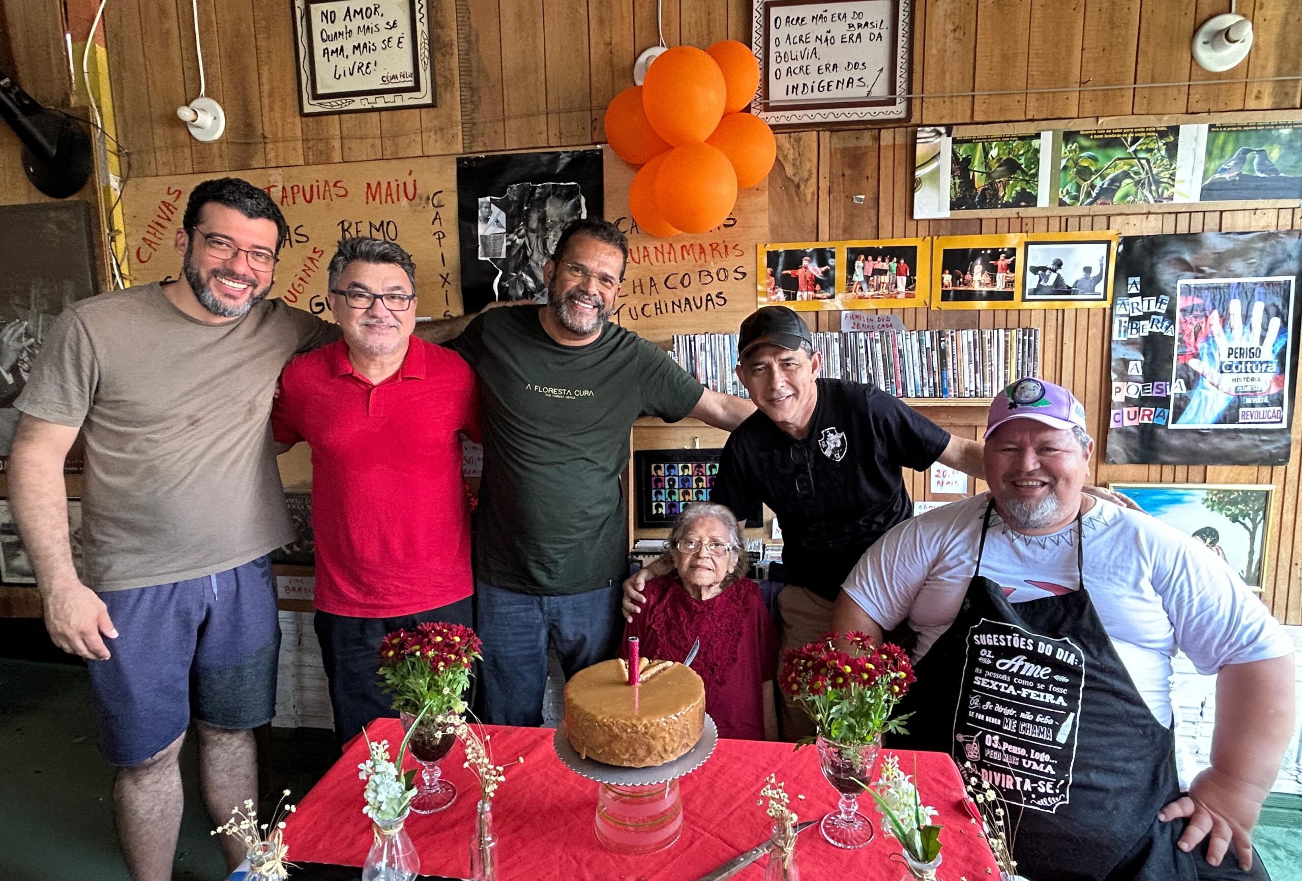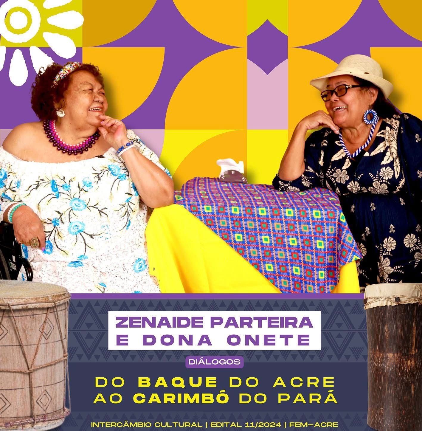Parteira e artista, no final de agosto, Dona Zenaide esteve em Belém-Pará para um encontro histórico com a Dona Onete, a lenda viva do Carimbó. As mestras Dona Zenaide e Dona Onete uniram o baque com o carimbó, os saberes, memórias e o canto da floresta, que podem ser apreciados nas redes sociais da Dona Zenaide. O intercâmbio cultural “Do Baque do Acre ao Carimbó do Pará” tem o apoio cultural do Ministério da Cultura.