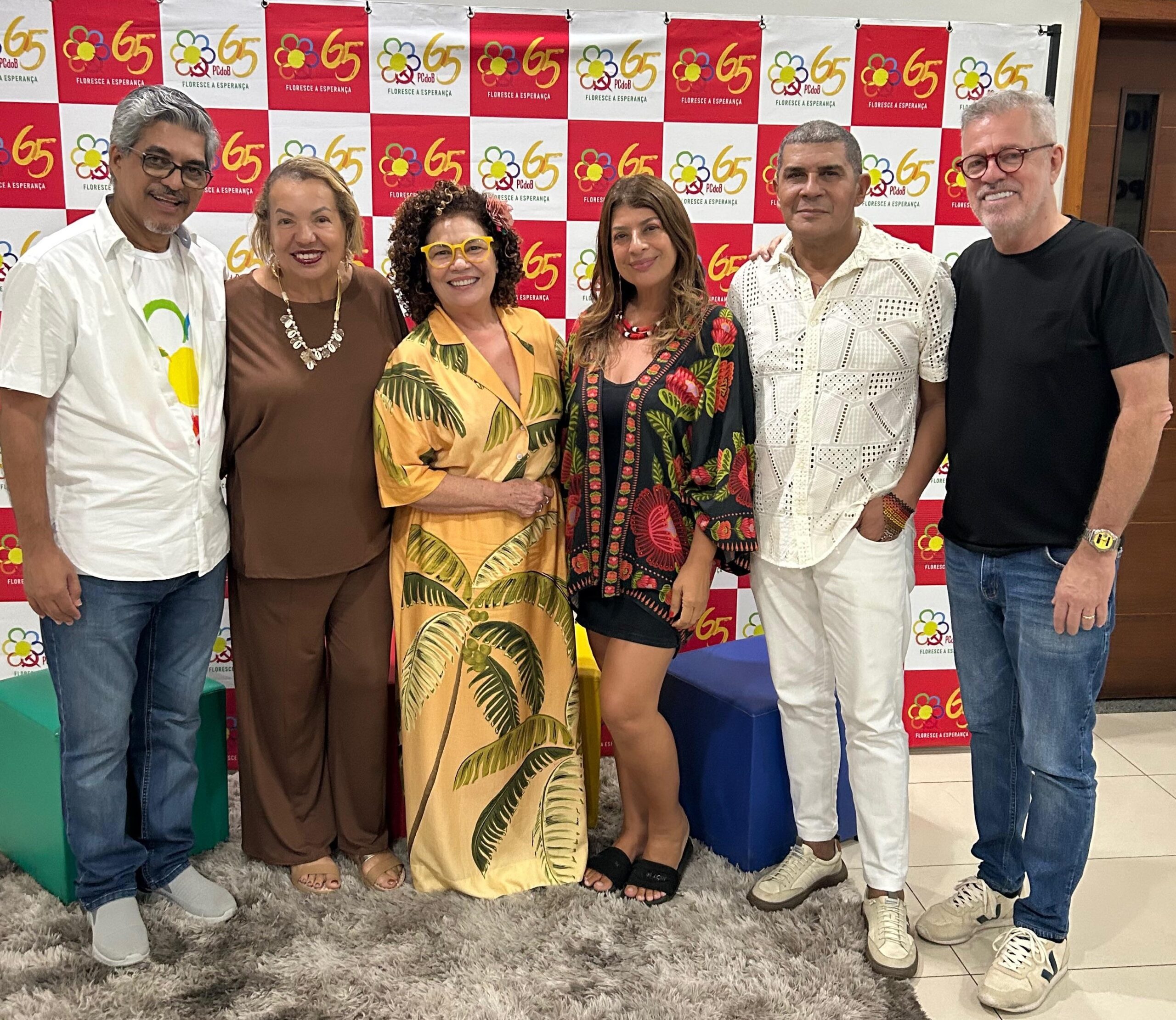 O casal Edvaldo Magalhães e Perpétua Almeida com seus convidados: Marta Cruz, Jackie Pinheiro, Moisés Alencastro e Gilberto Braga