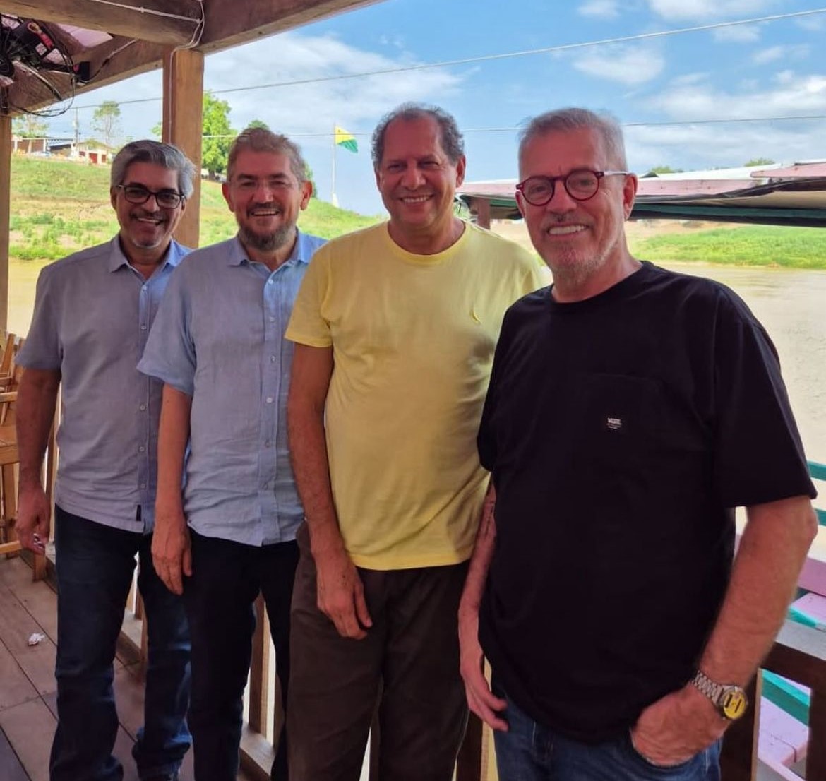 O deputado estadual Edvaldo Magalhães (PcdoB), o médico e ex-vice-prefeito de Rio Branco Eduardo Farias e o mercadólogo e comunicador Gilberto Braga, o Giba, almoçaram com o dirigente nacional do PCdoB, Adalberto Monteiro, no dia 19, no Restaurante Flutuante. Monteiro veio à Rio Branco para participar da Conferência Estadual do Partido, que aconteceu nos dias 19 e 20 de setembro, na Fecomercio. À mesa do restaurante, muitas iguarias da culinária local e sucessão eleitoral. Claro!