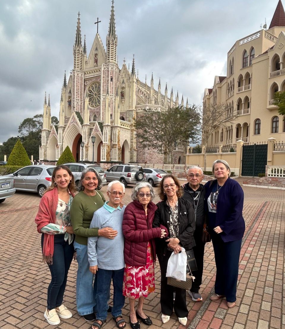 O economista e auditor do Tribunal de Contas do Estado aposentado, Antônio José Oliveira, com sua esposa Wilce e familiares, em recente visita ao Templo de Nossa Senhora de Fátima, da Congregação Católica dos Arautos do Evangelho, em Cotia- SP.