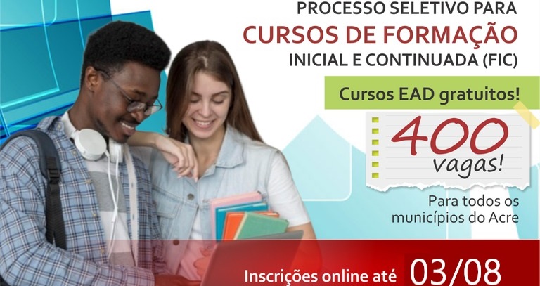 As inscrições para processo seletivo simplificado para a seleção de estudantes no âmbito do Programa Formar para Incluir: Expansão da Educação Profissional EaD no Acre, estão reabertas até o dia 03 de agosto de 2025, conforme edital complementar nº 03 lançado nesta segunda-feira (28/07) pelo Instituto Federal do Acre (Ifac).