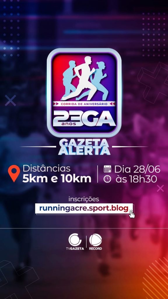 Os preparativos para a comemoração do aniversário de 23 anos do Gazeta Alerta estão em andamento. Nesta quarta-feira (04), se encerram as inscrições para a corrida, que já somam mais de 430 inscritos. A prova acontece no dia 28 de junho e terá percursos de 5 e 10 quilômetros e será realizada à noite, com largada marcada para às 18h30, na Avenida Chico Mendes — um dos principais pontos de encontro da comunidade de corredores da capital acreana.