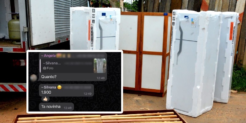 Pouco mais de um mês depois que a Prefeitura de Rio Branco realizou o início das entregas dos móveis às famílias atingidas pelas enchentes, objetos começaram a ser colocados à venda. Em uma captura de tela enviada à TV Gazeta, é possível ver uma geladeira ser oferecida por R$ 1.900: “Tá novinha”.