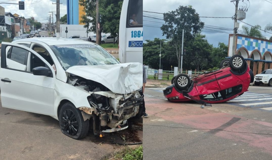 Um acidente de trânsito registrado no início da tarde desta quinta-feira (12) resultou no capotamento de um veículo na Avenida Ceará, nas proximidades de um cartório, em Rio Branco. A colisão envolveu um Volkswagen Gol branco e um Volkswagen Fox vermelho.