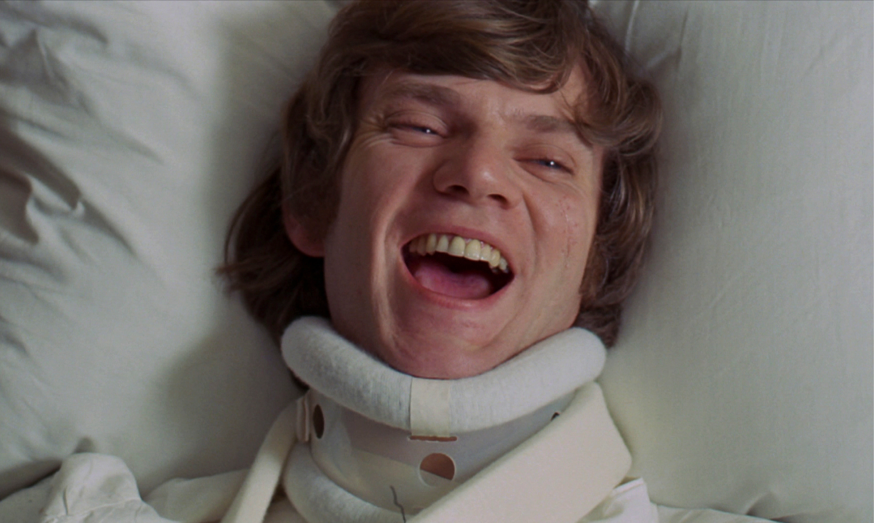 No centro de tudo está Alex DeLarge, vivido por um Malcolm McDowell absolutamente possuído. Ele improvisou várias cenas que viraram lenda, a mais famosa é cantar “Singin’ in the Rain” enquanto espanca e estupra o casal de escritores. Kubrick adorou tanto a ideia que refez a sequência inteira em cima daquele improviso. O resultado é uma das coisas mais desconfortáveis já filmadas, porque a violência ali não é só brutal: é alegre, criativa, quase dançante.