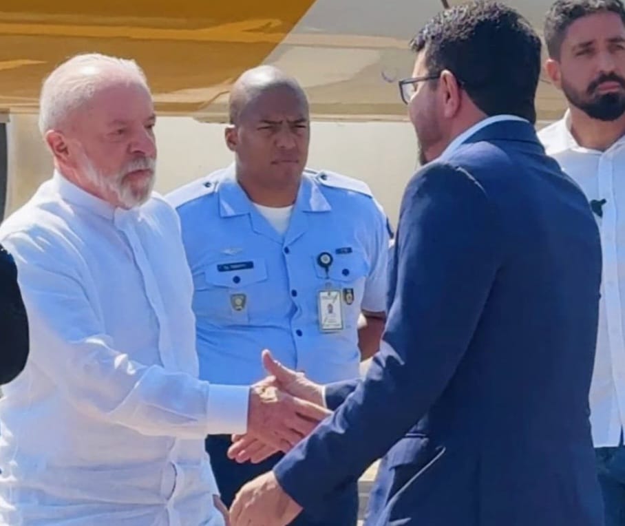 O governador Gladson Camelí recepcionou o presidente da República, Luiz Inácio Lula da Silva, na manhã desta sexta-feira, 8, no Aeroporto Internacional de Rio Branco. O chefe do Executivo nacional cumpre agenda no Acre e anunciará investimentos que somam aproximadamente R$ 1,1 bilhão