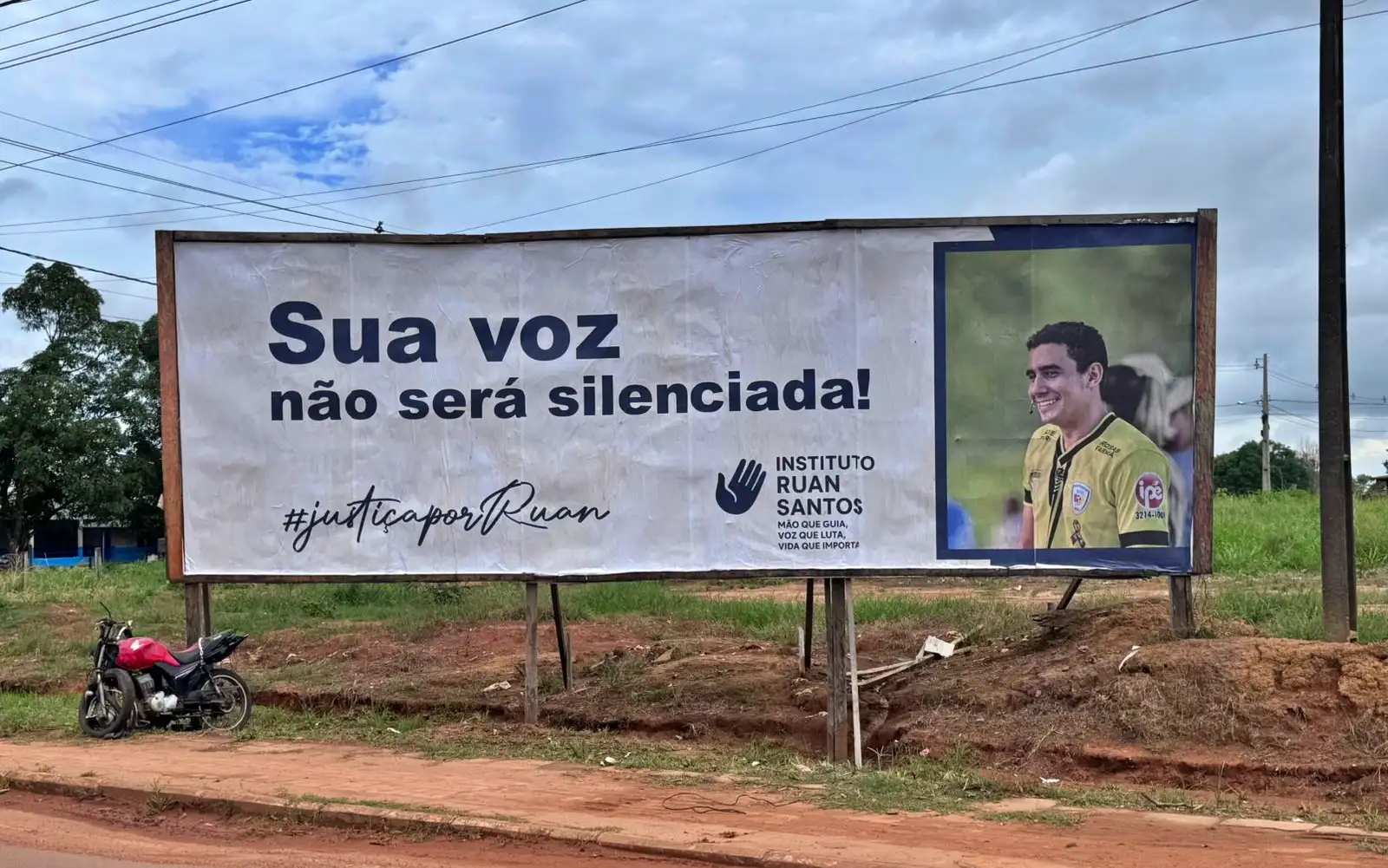 O advogado Fábio Santos, pai do jovem árbitro Ruan Rhiler Rodrigues Santos, de 23 anos, intensificou nesta semana a cobrança por justiça após a morte do filho em um acidente de trânsito na Estrada de Porto Acre (AC-10). Como forma de protesto, ele acorrentou a motocicleta destruída usada por Ruan no dia da colisão a um outdoor instalado às margens da rodovia, onde também mandou fixar a frase: “Sua voz não será silenciada. Justiça por Ruan.”