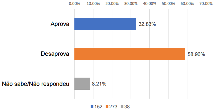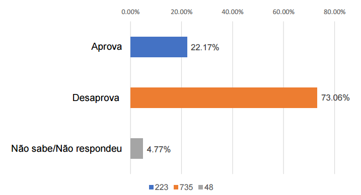Com base nas informações divulgadas, a desaprovação do presidente Lula chega a a 73,06%, com 735 votos de rejeição. Em contrapartida 22,17% (223 votos) afirmaram satisfação com a presidência.
