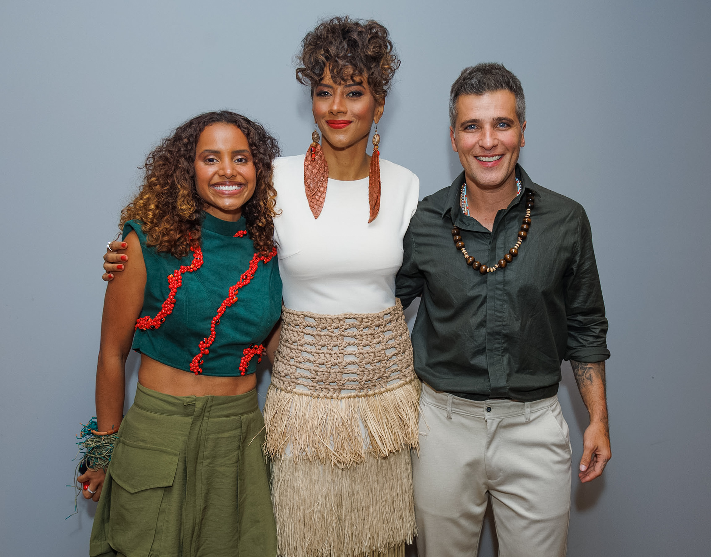 A atriz acreana Gleici Damasceno com a apresentadora Aline Midlej e o ator e ativista Bruno Gagliasso