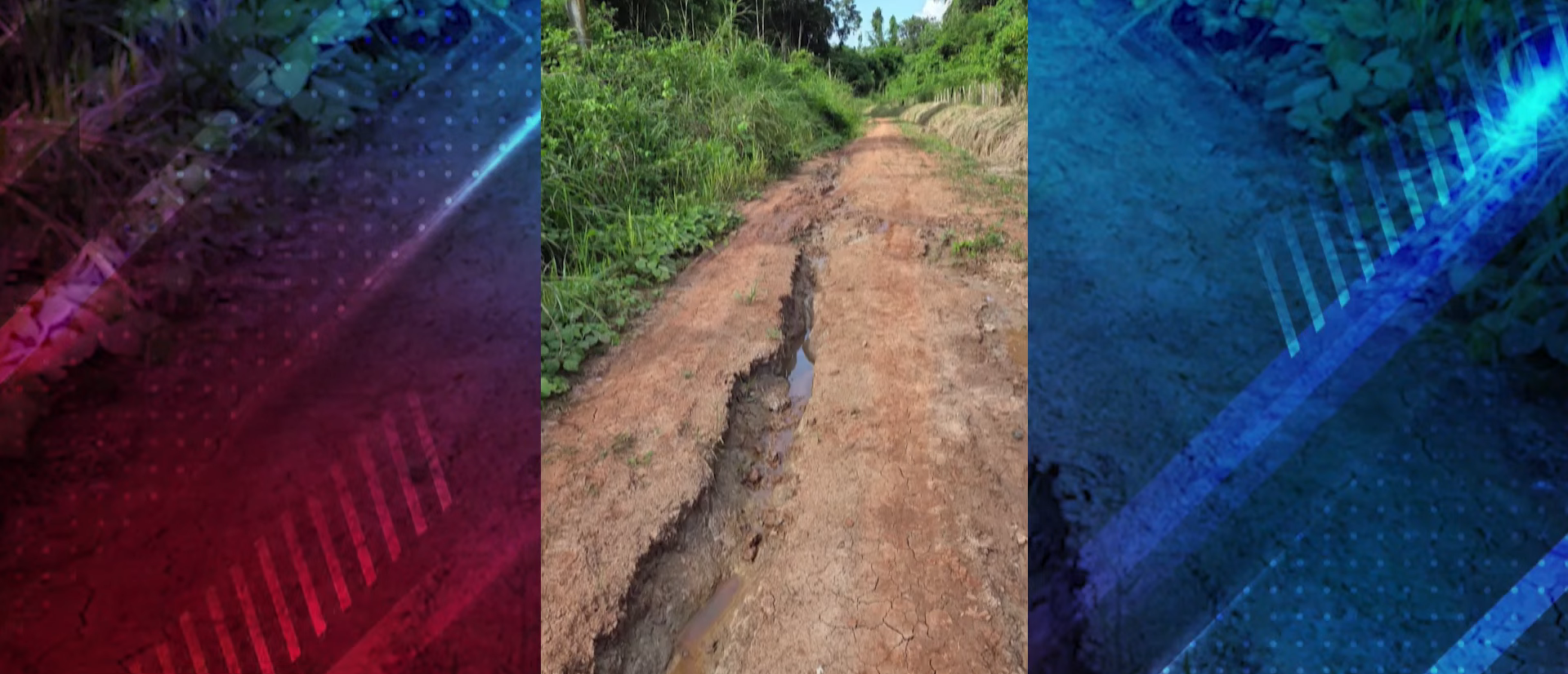 Ramal Da Nova Olinda apresenta trechos intransitáveis, impedindo a passagem de veículos e isolando produtores na região. – Imagem: TV Gazeta