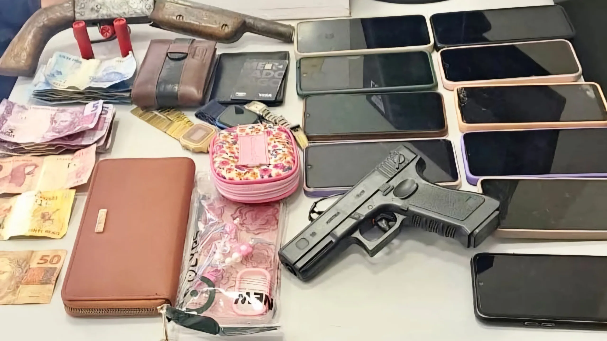 Durante a abordagem, eles confessaram o roubo e indicaram o local onde estavam escondidos os objetos subtraídos e a arma utilizada no crime. No local, foram recuperados 11 celulares, dinheiro, uma escopeta municiada, um simulacro de pistola, munições e outros itens relacionados ao delito.
