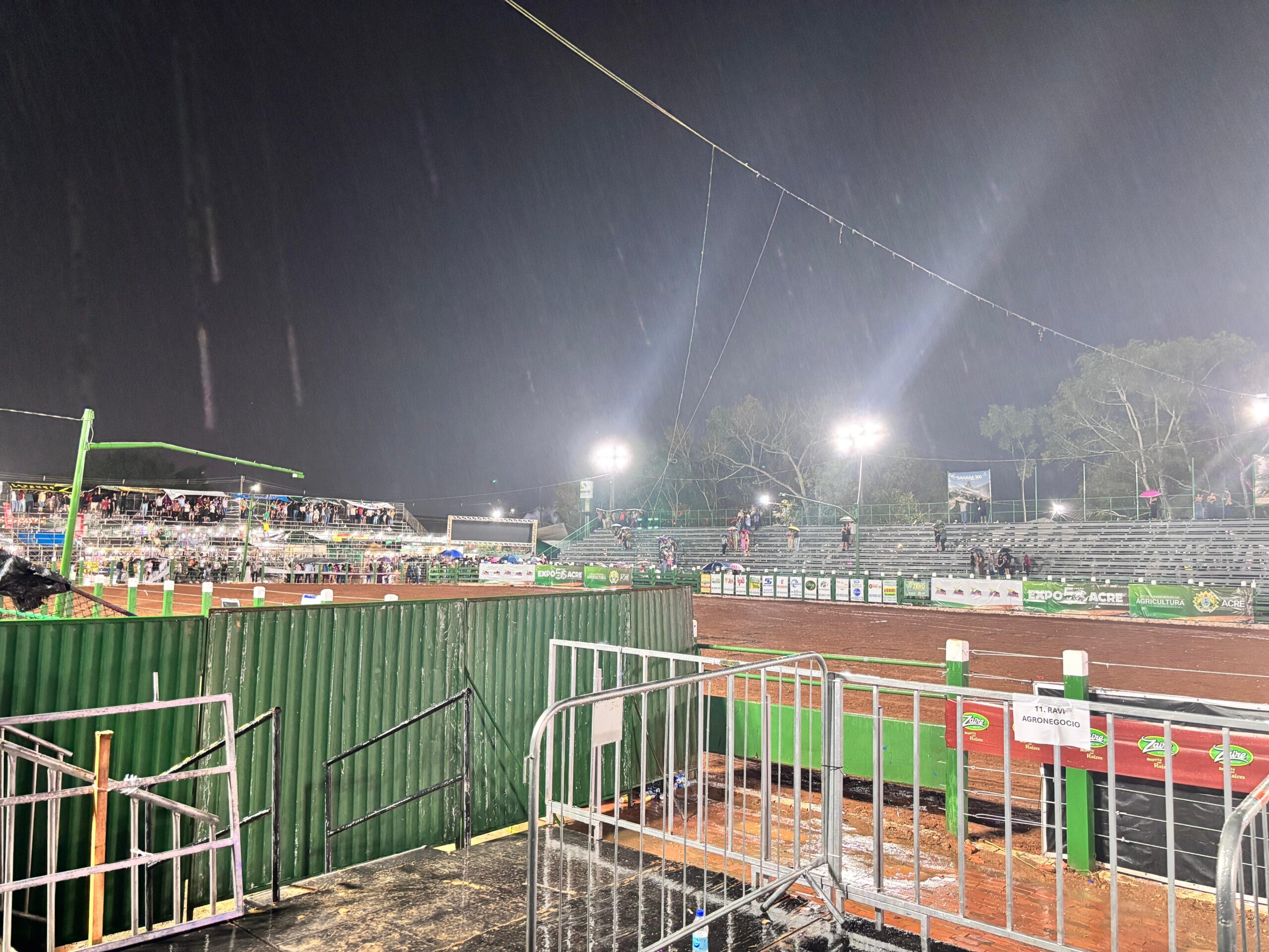A decisão foi tomada em caráter preventivo, respeitando os protocolos de segurança típicos de eventos desse porte. Segundo os organizadores, a previsão é de que as montarias sejam retomadas assim que as condições do tempo e da arena permitirem.