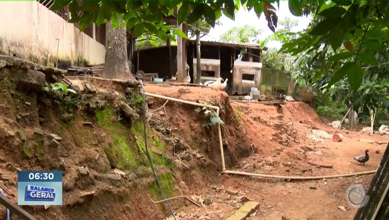 Para tentar conter o avanço do desbarrancamento, ela investiu em três muros de contenção, carradas de barro e reforços estruturais. O esforço, porém, consumiu recursos que a família não tinha.