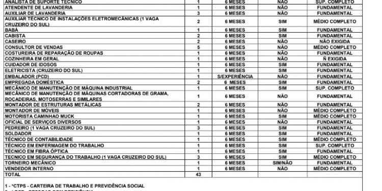 Sine oferta 43 vagas de emprego para Rio Branco e Cruzeiro do Sul nesta terça-feira