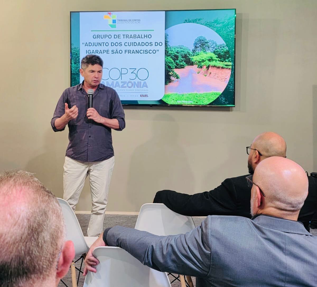 No dia 12, o TCE-AC apresentou sua iniciativa de governança climática voltada à Bacia Hidrográfica do Igarapé São Francisco, projeto desenvolvido sob coordenação da presidente Dulce Benício e conduzido pelo conselheiro Ronald Polanco e pelo assessor técnico Rômulo Souza. O trabalho multidisciplinar reúne conselheiros, auditores e especialistas, integrando controle externo, monitoramento ambiental, infraestrutura urbana e inclusão social.