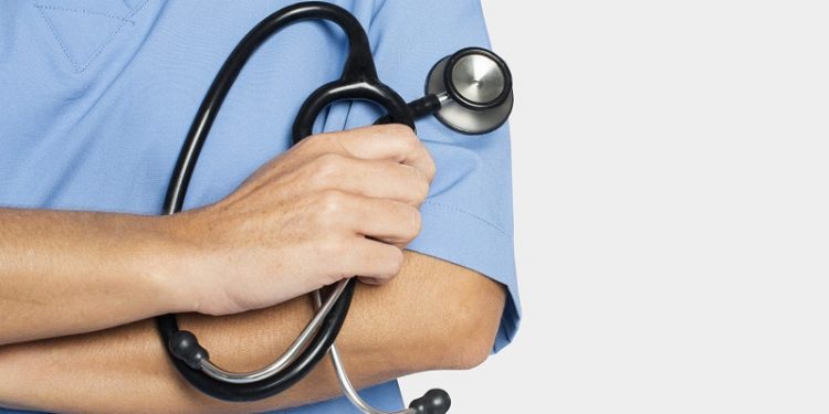 Doctor’s hand holding a stethoscope closeup