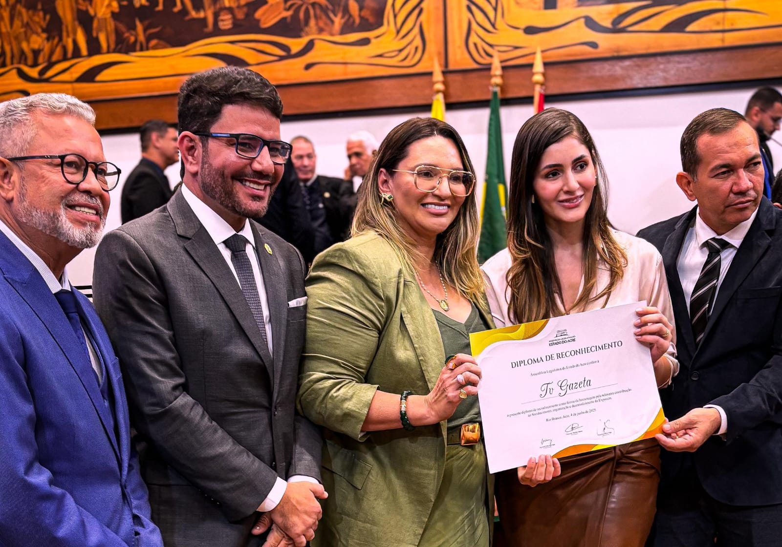 A TV Gazeta, afiliada à Rede Record no Acre, recebeu uma homenagem durante sessão solene na Assembleia Legislativa do Acre (Aleac) nesta quarta-feira (04), em reconhecimento a cobertura da feira de agronegócios do Acre, a Expoacre, que completa 50 anos em 2025. Além da TV Gazeta, cerca de 70 entidades foram reconhecidas, entre empresas e figuras públicas.